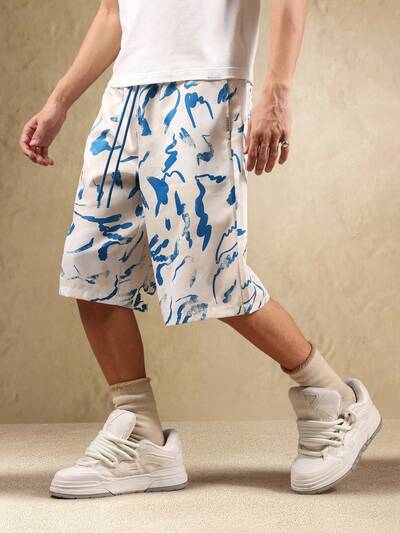Artistic Abstract Print Pleated Relaxed Fit Shorts-45%