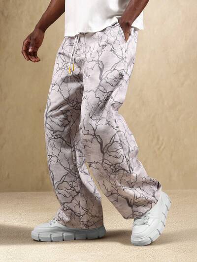 Printed Marble Pattern Pull On Wide Leg Loungewear Pants-30%