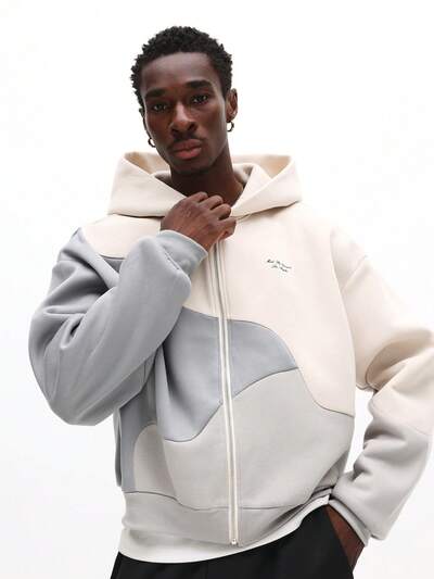 Colorblock Zip Up Hoodie With Drawstring-35%