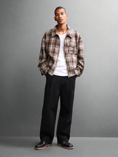 Plaid Flannel Harrington Jacket With Zip Closure-50%