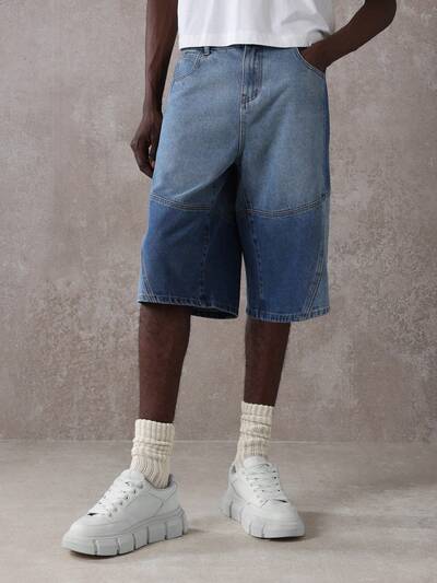 Two-Tone Loose Fit Bermuda Denim Shorts-50%
