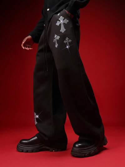 Relaxed Drop Crotch Sweatpants With Side Stripes