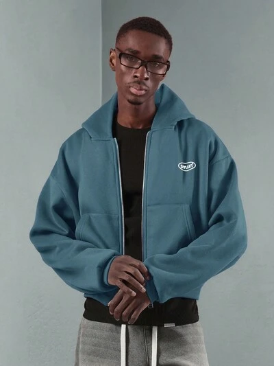 Oversized Cropped Zip Hoodie With Logo Detail-30%