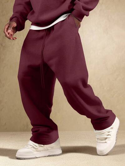 Straight Fit Drop Crotch Joggers With Drawstring-10%