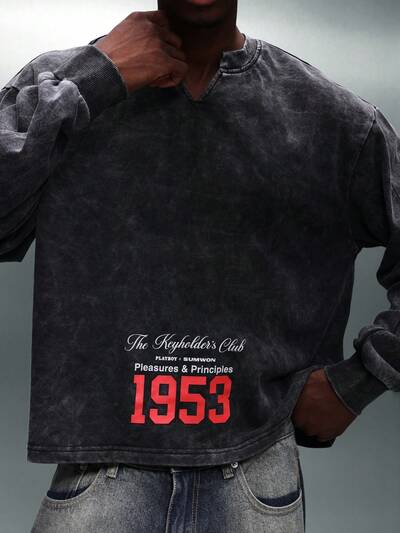 PLAYBOY X SUMWON Washed Effect Pullover Hoodie With Bunny Logo Print-15%