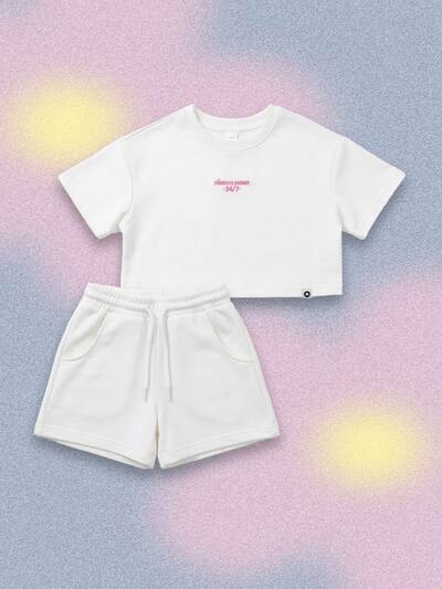 Oversized Prinzessin Energie 24/7 weißes Crop Top und Shorts Co-Ord Set für Mädchen Casual Sommer OutfitKapuzenpullover mit Reißverschluss und passende Shorts (Set)