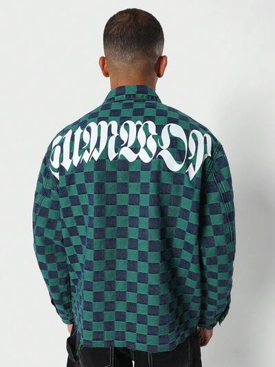 Karierte Trucker-Jeansjacke mit weißen Rennstreifen