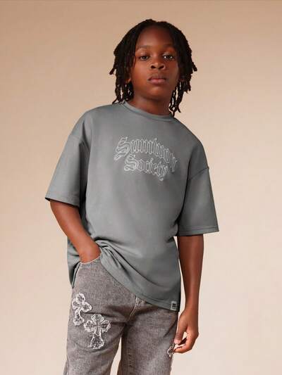 Oversized Jungen Sommer Casual Waschshirt mit Wellen Logo und Surf-Grafik Muster für TweensNEU