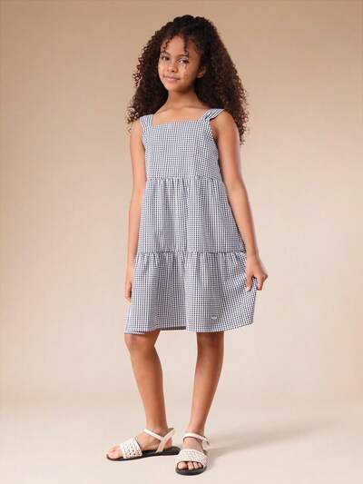 Stufenkleid mit -Karo und eckigem Ausschnitt