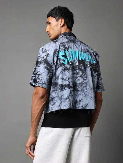Oversized Passform Batik Crop Top mit Graffiti Grafik Muster-35%