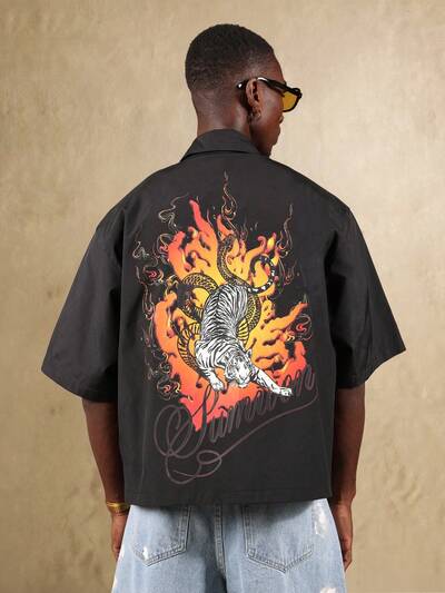 Übergroßes Streetstyle-Shirt mit Drachen-Tiger-Grafik-45%