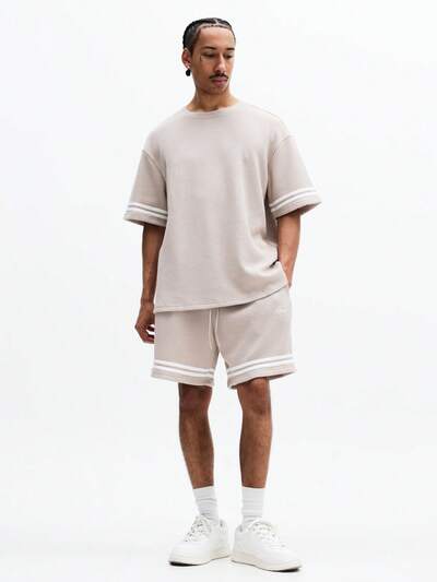 Waffelstrick-T-Shirt und Shorts-Set mit Kontraststreifen
