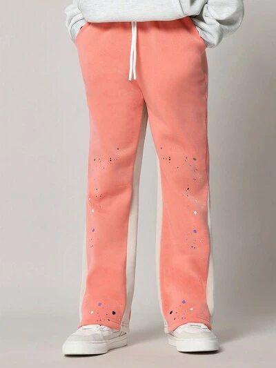 Relaxed Fit Jogginghose mit Farbspritzeffekt und kontrastierendem Seitenteil-50%