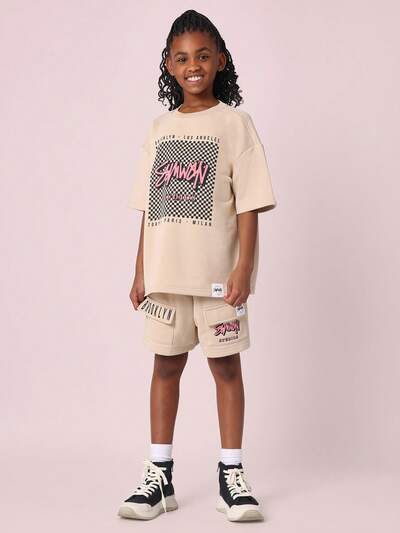 Bequeme Oversize-T-Shirt-Kombinationen mit kurzen Ärmeln und Schachbrettmuster-30%