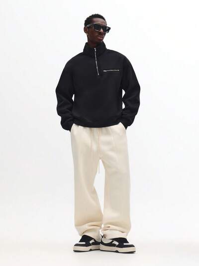 Sweatshirt mit Viertelreißverschluss, Stehkragen und Tasche-25%