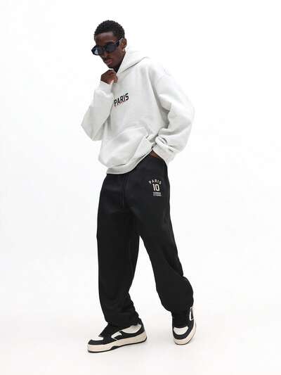 Regular Fit Overhead Farbblock Kapuzenpullover mit Grafik-Muster und gerade geschnittene Knie-Panel Jogginghose 2-teiliges Set