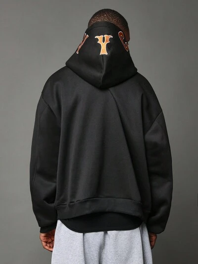 Street Style Cropped Pullover Hoodie Vintage Varsity Nummer