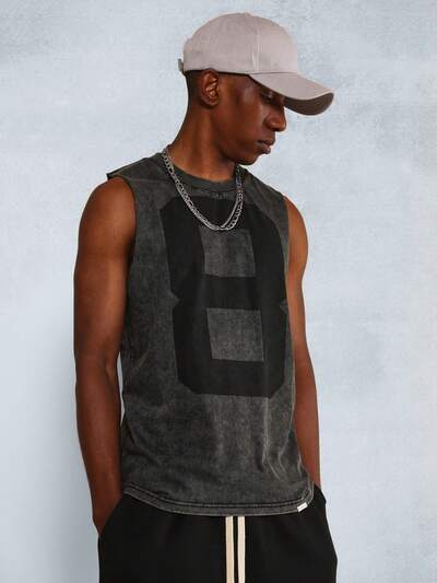 Gewaschenes Trägershirt mit Nummer Grafik Muster-50%