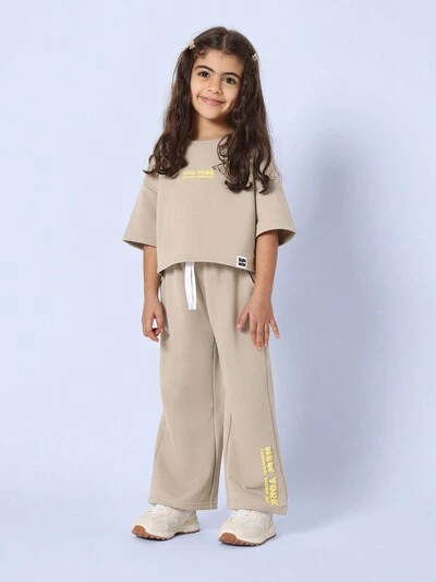 Conjunto de dos piezas de sudadera y pantalón casual de pierna ancha-25%