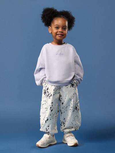 Conjunto de camiseta holgada de color lavanda y pantalón ancho morado con detalles de rayas laterales y estampado de la temporada uno para niñas-50%