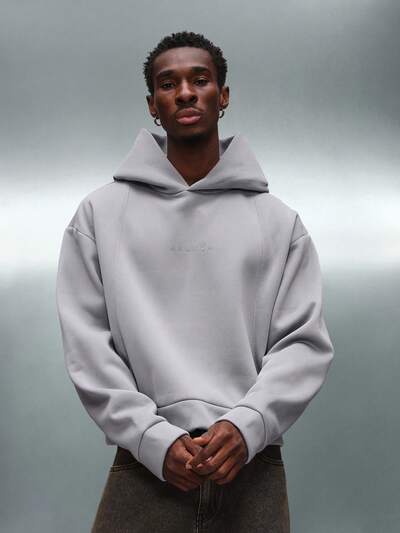 PLAYBOY X SUMWON Sudadera polo retro con cremallera de un cuartoSudadera extragrande con capucha gris jaspeada y bordado de texto