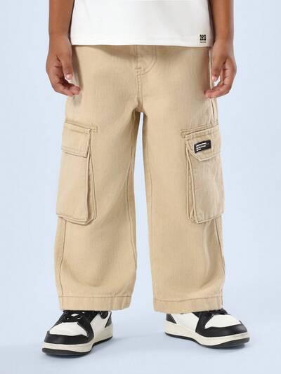 Pantalones cargo de pierna ancha con bolsillos laterales y cintura elásticaConjunto de camiseta y jogger con bloques de color y estampado