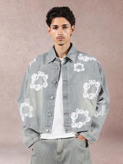 Chaqueta vaquera de lavado claro con estampado circular