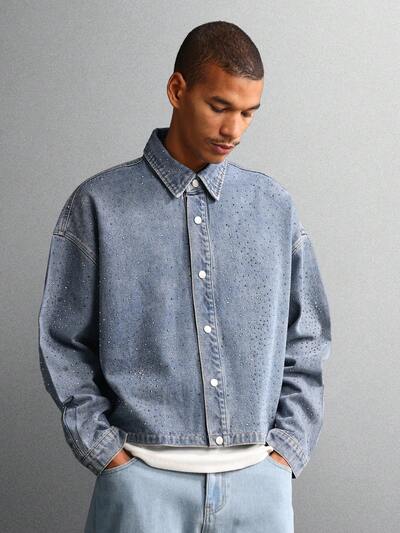 Chaqueta vaquera de lavado con adornos y botones brillantes