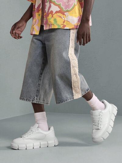 Shorts vaqueros Jort con panel lateral de encaje de crochet
