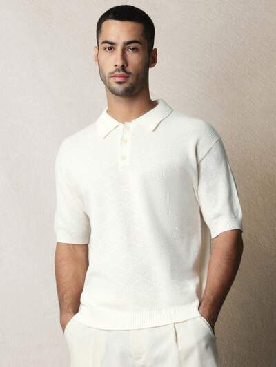 Polo de punto de manga corta con botones, texturizado y corte relajado vintage-50%