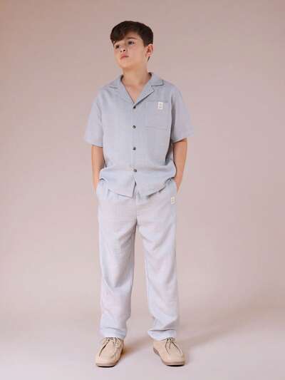 Conjunto de camisa y pantalón con botones delanteros y tacto de lino
