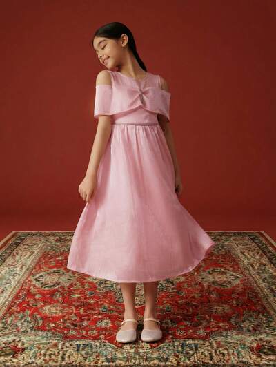 Vestido midi con detalle de lazo y hombros descubiertos