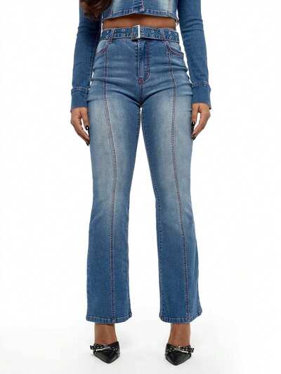 SUMWON WOMEN Vaqueros de corte acampanado de tiro alto y denim elástico con detalle de costura delantera