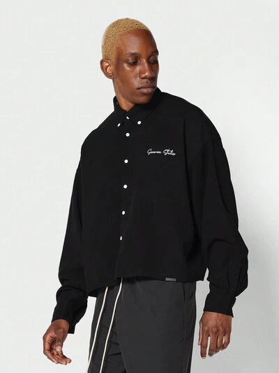 Camisa de carpintero de manga larga de ajuste sobredimensionado con estampado gráfico árabe en la espalda