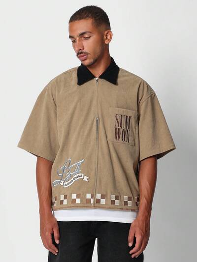 Camisa de pana con cremallera y ajuste recto con estampado gráfico