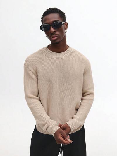 Suéter clásico de punto acanalado con cuello redondo-20%