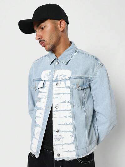 Chaqueta vaquera desgastada estilo camionero con estampado blanco