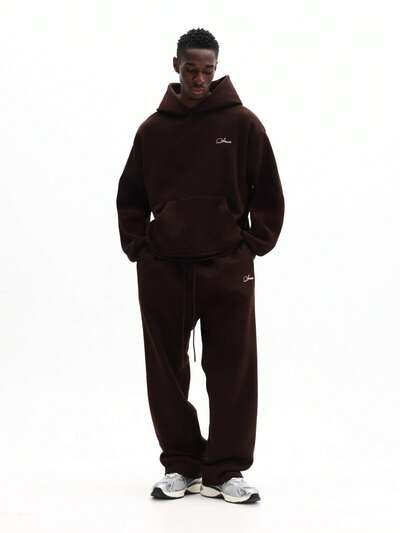 Conjunto básico y acogedor de sudadera con capucha extragrande y pantalón de chándal-15%
