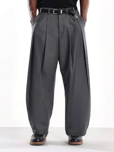 Pantalones de sarga plisados de pierna ancha con bolsillos laterales-25%