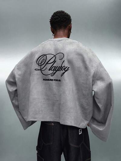 PLAYBOY X SUMWON Camiseta corta extragrande de manga larga con logotipo en cursiva-25%