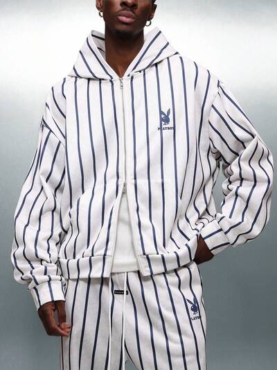 PLAYBOY X SUMWON Sweat à capuche court zippé à rayures-20%