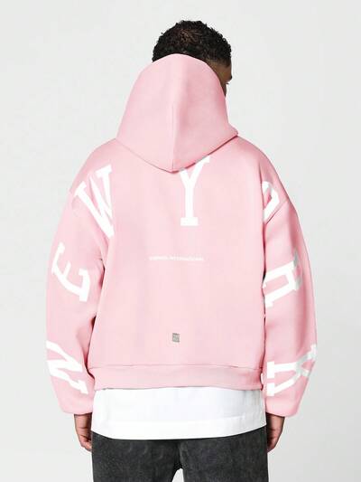Sweat à capuche surdimensionné avec imprimé lettre-25%