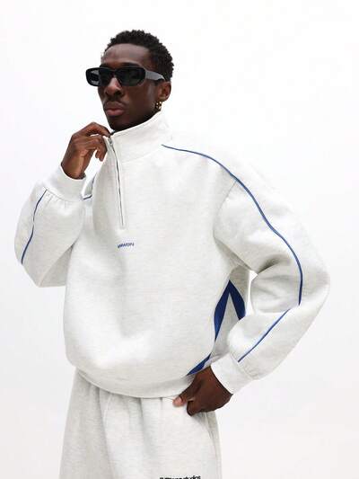 Sweat à capuche demi-zippé avec passepoil contrasté-15%