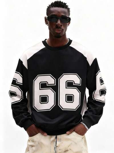 Sweat-shirt à col rond imprimé de chiffres-20%