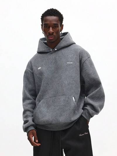 Sweat à capuche streetwear imprimé graffiti surdimensionné avec poche centrale-10%