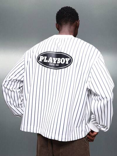 PLAYBOY X SUMWON Sweat-shirt court à manches longues rayé-25%