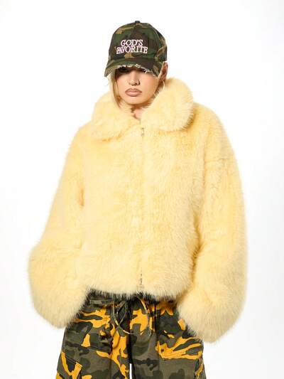 SUMWON WOMEN Veste courte en fausse fourrure avec fermeture éclair-10%