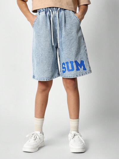 Jorts (short en jean) avec imprimé graphique et entrejambe basse pour filles préadolescentes-50%