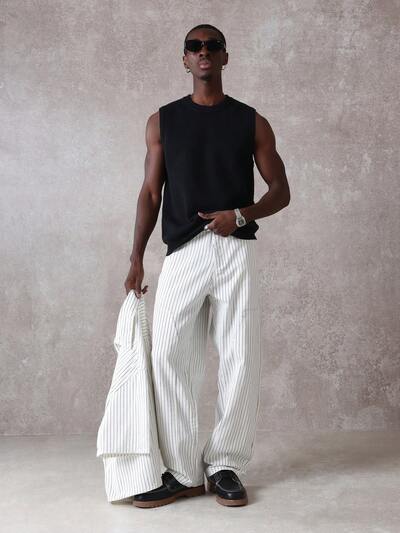 Jean taille haute à rayures et coupe ample, coupe décontractée