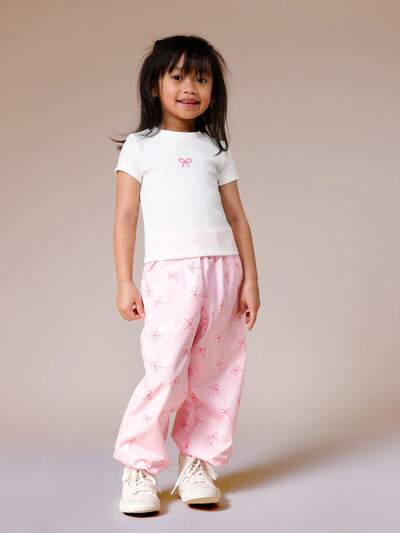 Ensemble haut à pois et pantalon large avec détails de nœudEnsemble t-shirt à manches courtes et pantalon avec imprimé nœud